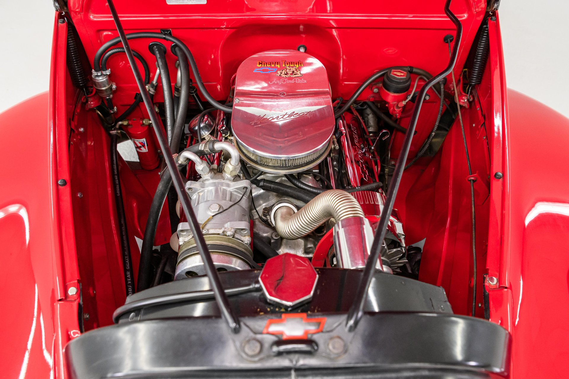 Edelbrock polished aluminum intake and 4-barrel carburetor