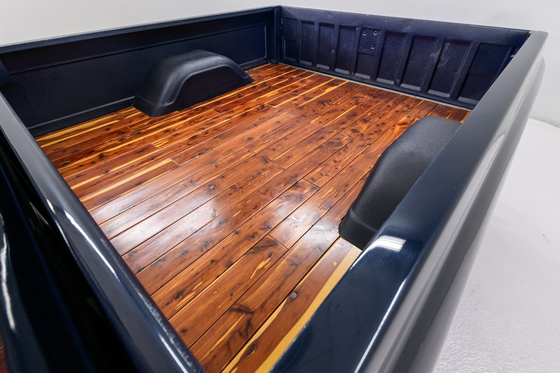 Cedar wood boards and treated plywood bed floor with Rhino lining