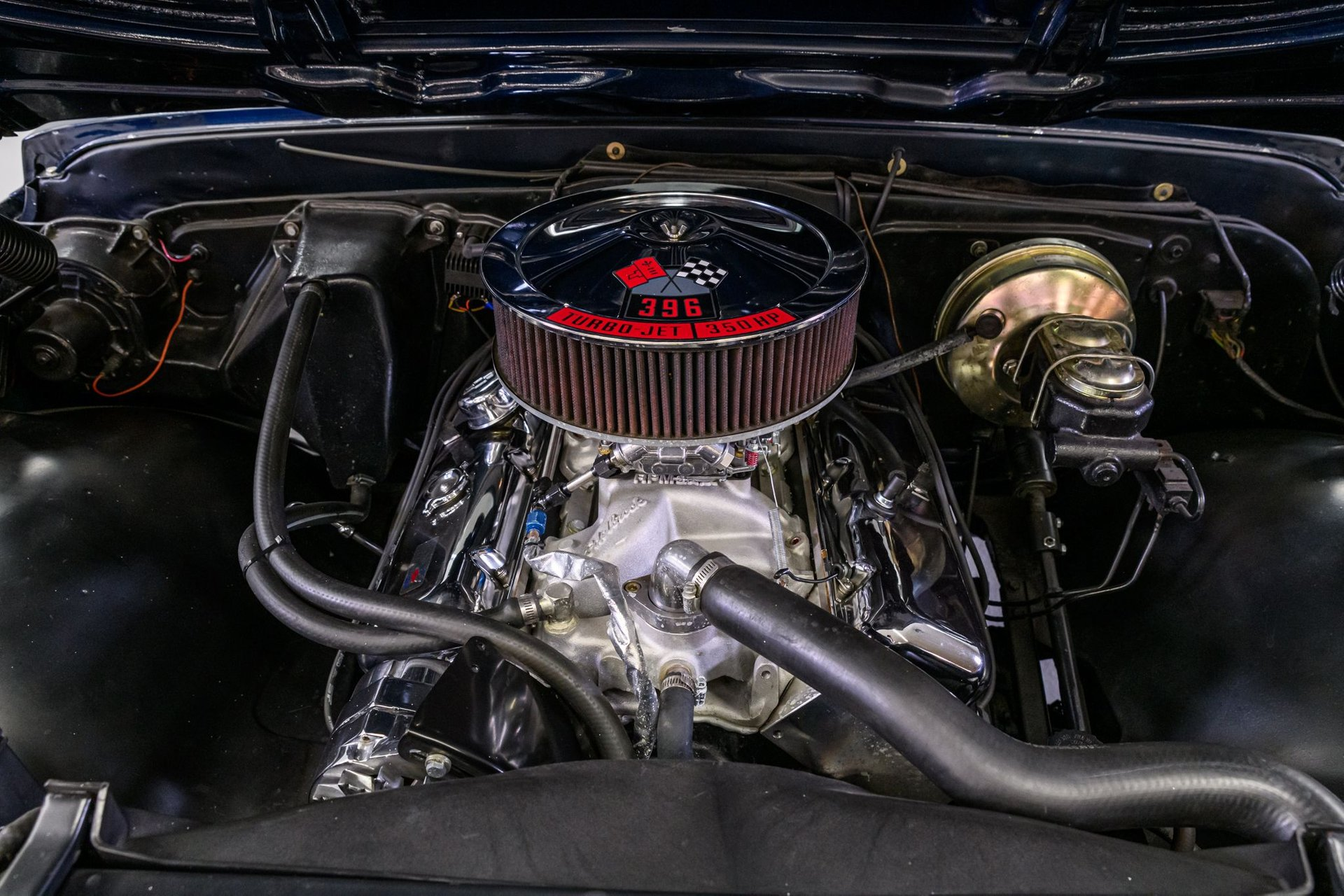 408 cubic inch GM big-block V8, bored .030 over, aluminum heads, hydraulic COMP Cam with 292 duration, roller rockers, Edelbrock Performer RPM Air-Gap intake