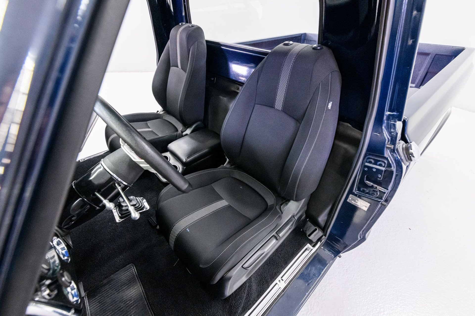 Black cloth bucket sport seats with center console and matching door cards