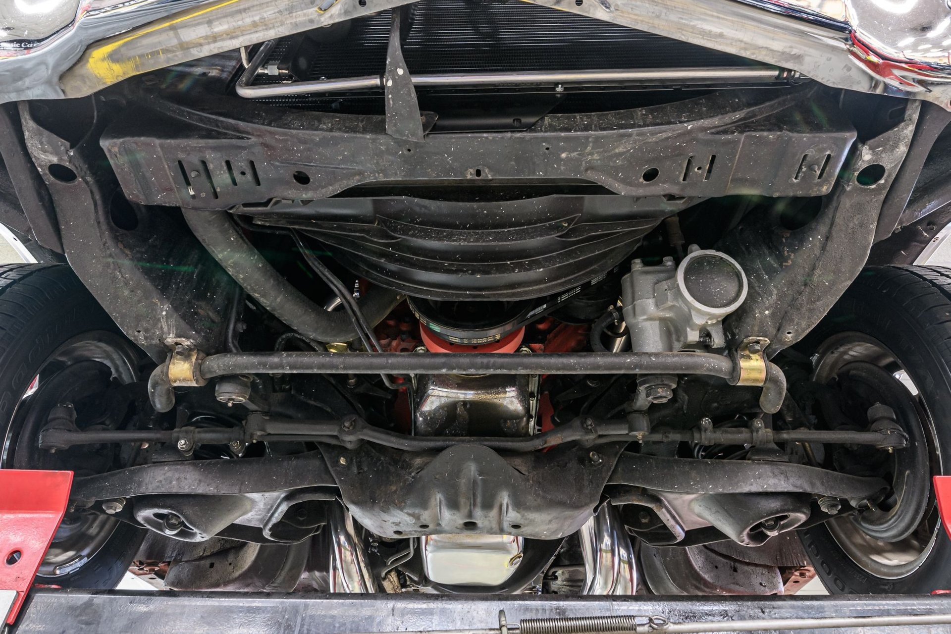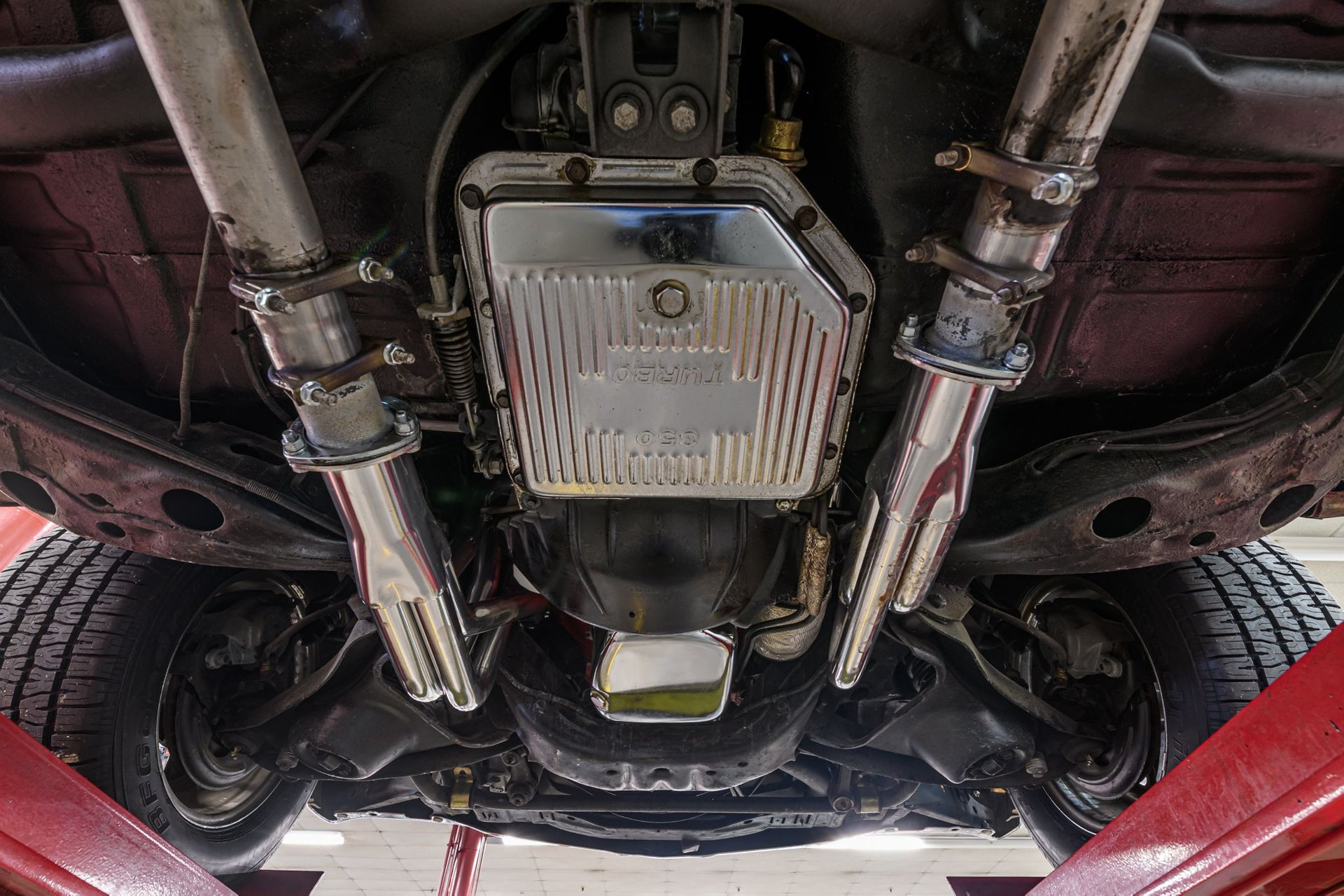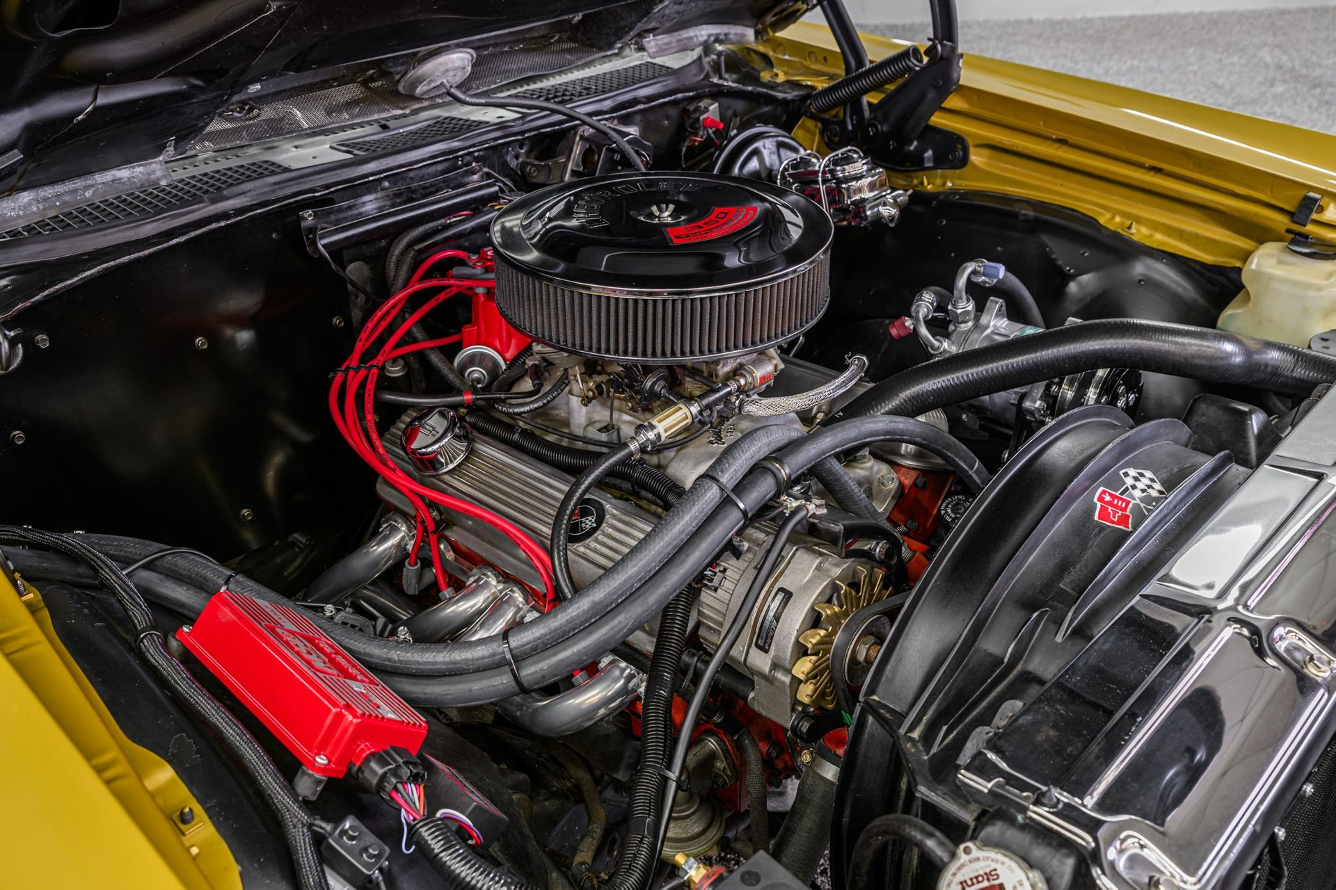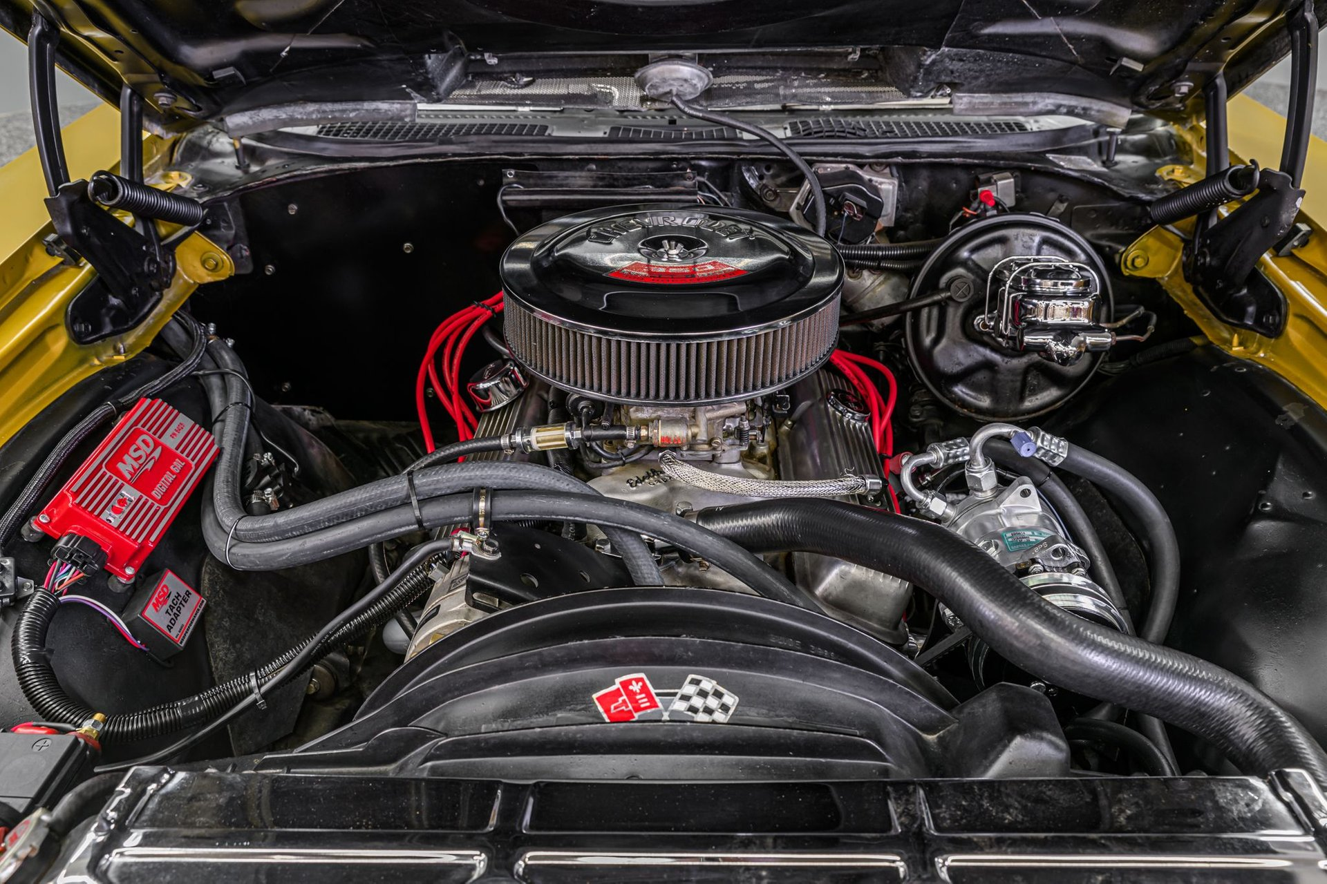 350 cubic inch small-block V8, matching numbers, rebuilt with new crank, cam, .030 overbore, 8.5:1 pistons, Edelbrock intake, Holley 650cfm carburetor, MSD ignition