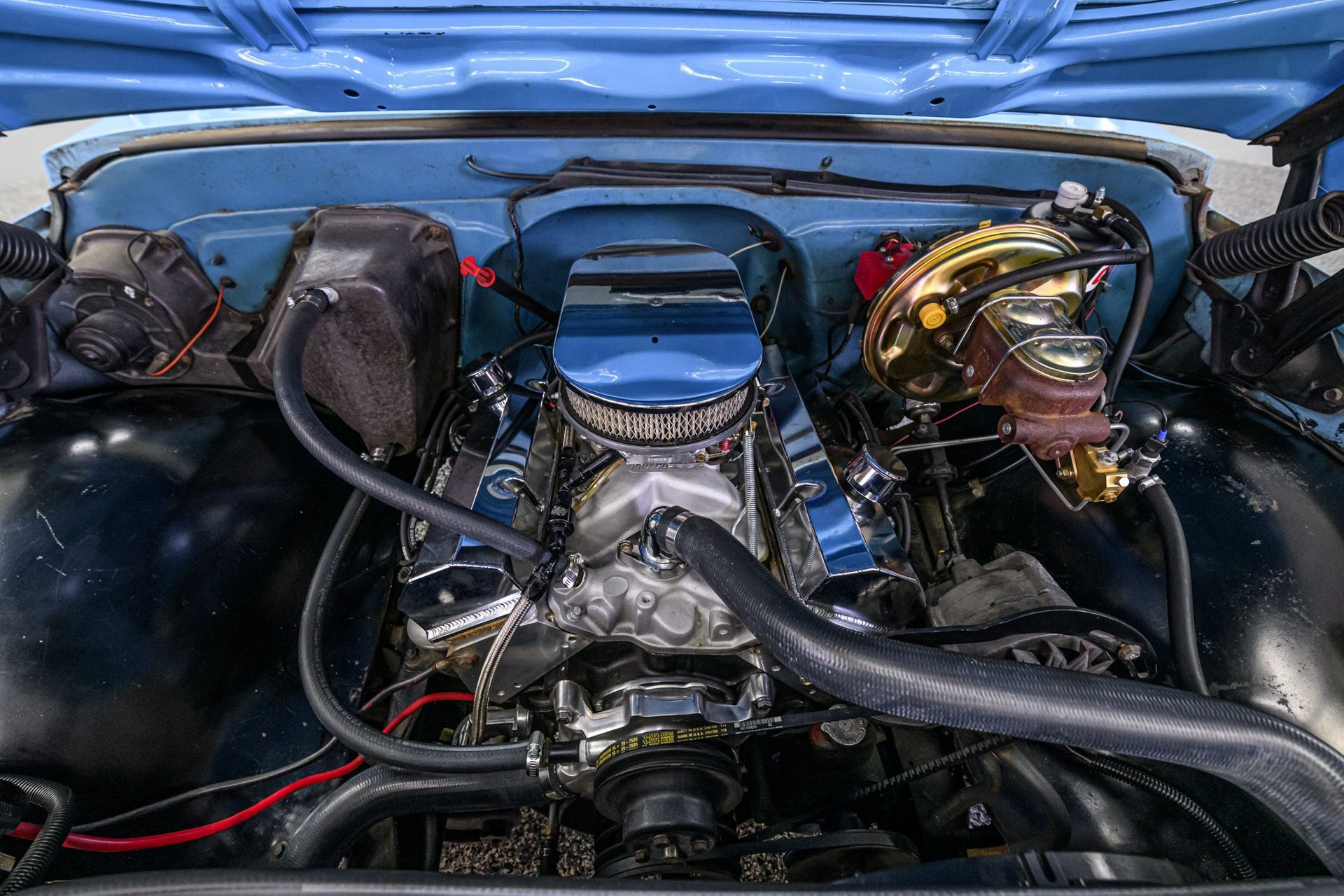 Single-plane aluminum intake with double-pumper Holley carburetor